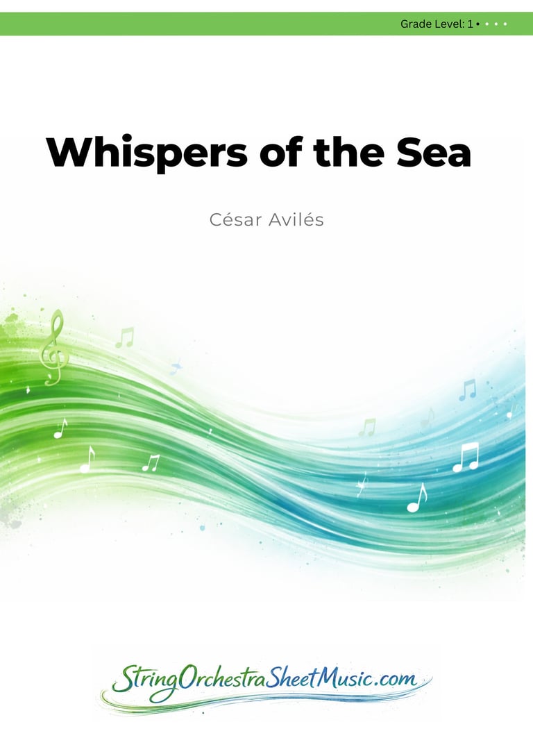 Whispers of the Sea is a slow, atmospheric piece for beginning string orchestra focused on tone production, intonation, and controlled bowing.